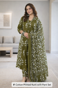 Cotton kurti sets garmiyon ke liye best choice hote hain. Breathable fabric hone ki wajah se ye long office hours ke liye perfect rehte hain. Simple prints aur soft colors office environment ke liye suitable hote hain.