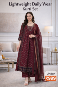 Office wear kurti sets na sirf elegant look dete hain balki poore din ke liye comfort bhi provide karte hain. Agar aap bhi budget ke andar achhe quality ke office wear kurti sets dhoondh rahi ho, to ye blog aapke liye perfect hai.