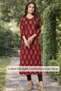 Cotton straight cut kurtis daily wear ke liye best choice hoti hain. Cotton fabric breathable hota hai aur garmiyon me poore din comfortable feel deta hai. Simple prints aur light colors daily use ke liye perfect hote hain.