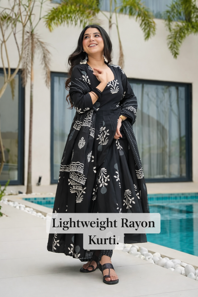 Rayon fabric lightweight aur flowy hota hai. Ye poore din ke liye comfortable option hai.